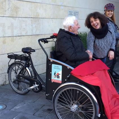 La actividad consiste en realizar paseos y salidas en triciclo donde el voluntario puede llevar a dos personas mayores por triciclo. El triciclo es una herramienta para construir mejores vínculos inter-generacionales y relaciones, creando historias paseando por Donostia, donde las personas mayores re-descubren de la ciudad acompañados de voluntarios, familiares, vecinos, amigos, colaboradores generando COMUNIDAD.