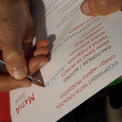 Ahora empezamos con la distribución de los cuentos en papel, con los colegios e ikastolas con los que tenemos relación con los programas intergeneracionales, y una unidad también para cada persona mayor que vive en Matia, para que lo pueda leer, regalar, contar...