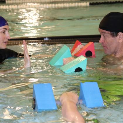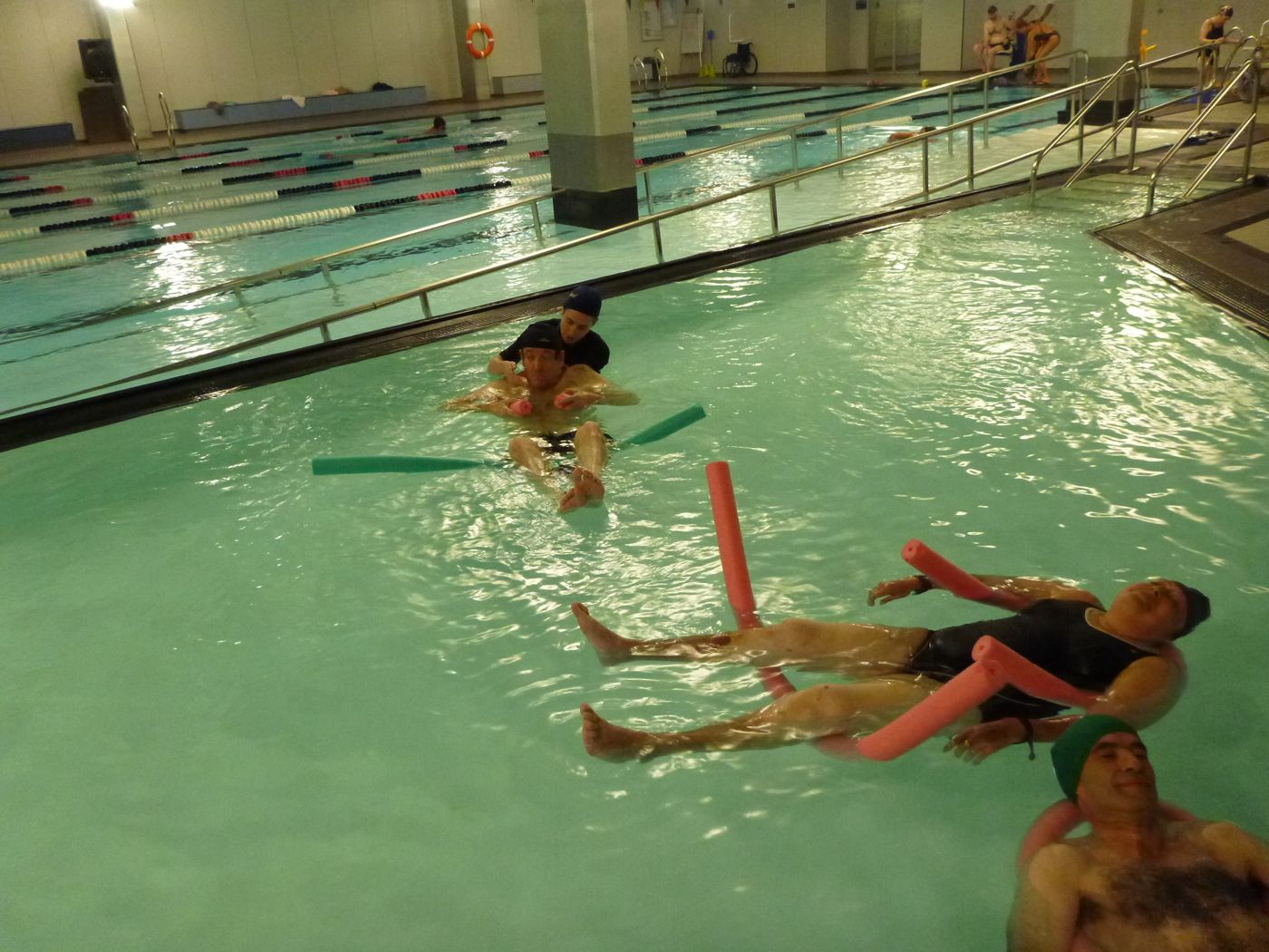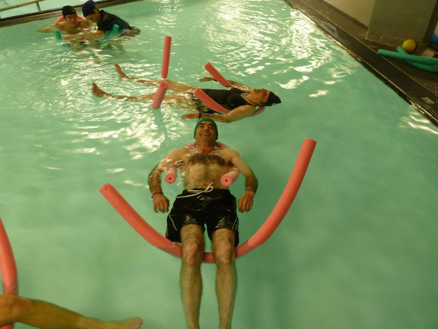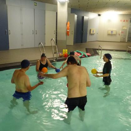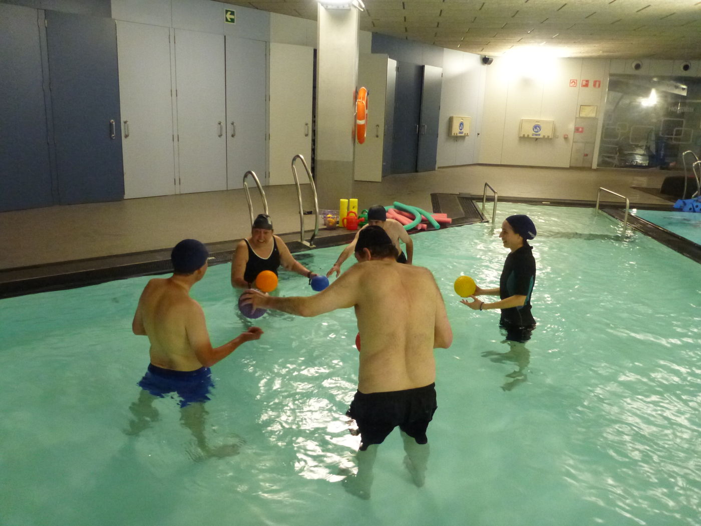 El 7 de Septiembre ya hicimos nuestra primera sesión en Hegalak. En este primer grupo participan 5 personas, con historias, experiencias y situaciones de salud muy diversas. Podemos contaros que una de las personas no había estado nunca en una piscina, aunque sabe nadar muy bien. Otra persona hacía muchos años que no se sumergía en el agua. Y poder hacer ejercicio físico, guiada y apoyada por una fisioterapeuta, ¡es un lujo! Actividades adaptadas, que hacen mover el cuerpo, en un medio que ofrece una sensación de ingravidez.