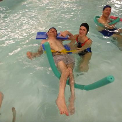 Podemos comentaros que desde finales de Diciembre, estudiantes del módulo de Atención a Personas en Situación de Dependencia del Politécnico Easo están apoyando al grupo. Cada viernes dos alumnos de forma rotatoria acompañan al grupo en los vestuarios y en el agua, con objetivo de aprender juntos y poder hacer las tareas más personalizadas. La experiencia es positiva para ambas partes y desde aquí el agradecimiento a Easo Politeknikoa por su constante apoyo en diversos proyectos.
