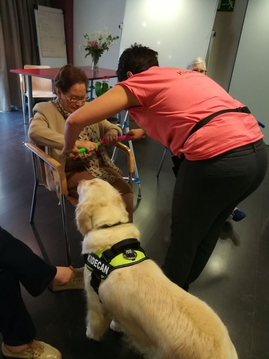 Además, os podemos contar que en el centro Zubiaurre llevan muchos años haciendo programas intergeneracionales con English School, y han querido hacer algunas sesiones de terapia juntos, mayores, pequeños y el perro como intermediario. Añadimos fotos y pronto os prepararemos un vídeo para que pódáis ver cómo cursan las sesiones y los beneficios del mismo.