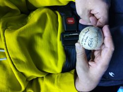 También hemos hecho una salida al frontón, porque ya sabéis que aquí la pelota... tene mucho tirón y es muy significativo, de los deportes vascos que más vivos se mantienen y que son una actividad social muy importante. Incluso nos trajimos una pelota con autógrafo.