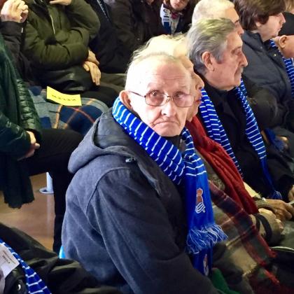 Esta semana finaliza el programa de reminiscencia basado en el fútbol que se está realizando en el centro Rezola gracias al acuerdo de colaboración con Real Sociedad Fundazioa. En una de las sesiones en la que pudimos contar con Jokin aperribay (Presidente de la Real Sociedad), invitó a un partido a los participantes en el taller ya un grupo de estudiantes de primero de bachillerato de Axular Lizeoa que estaban visitando el centro con objetivo de iniciar el programa intergeneracional que realizamos cada año con ellos.