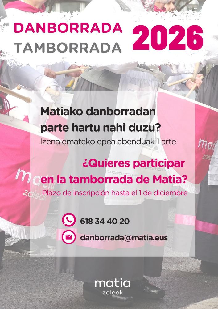 Hemos abierto el plazo de inscripción para la tamborrada MatiaZaleak de 2026.