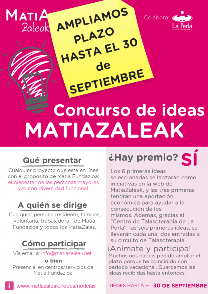 ¡Animaros! ¡Seguro que tenéis muchas ideas! Escribirlas y puede ser que se cumplan y que ayuden a mejorar el bienestar de las personas mayores y personas con diversidad funcional: info@matiazaleak.net