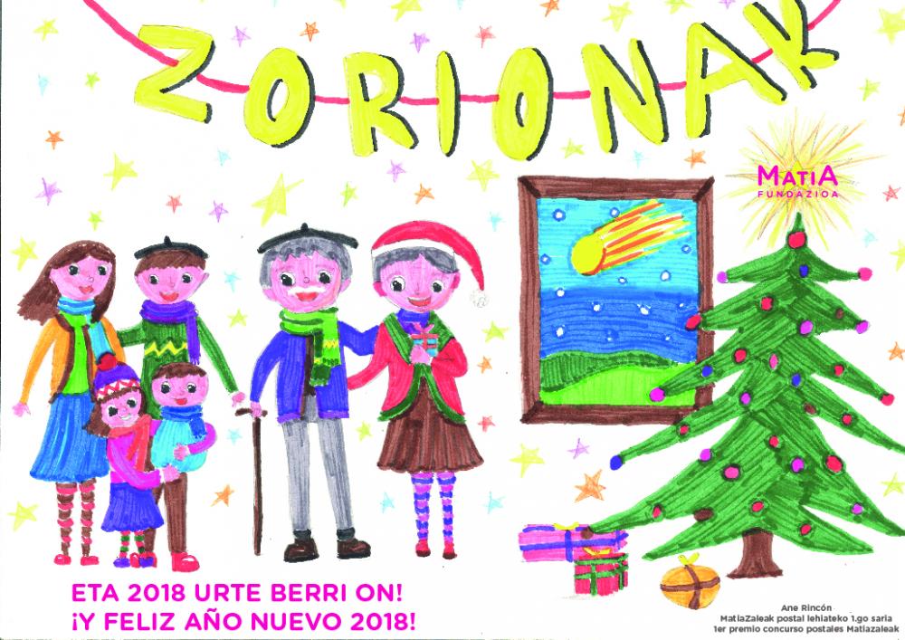 El primer premio ha sido para Ane Rincón, de 13 años. Esta postal será la que utilice Matia Fundazioa y MatiaZaleak para felicitar las Navidades.