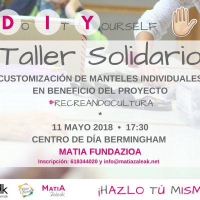¿Quieres un bonito plan para el 11 de Mayo? Inscríbete al taller solidario, donde haremos manteles individuales, aprendiendo nuevas técnicas, y que luego te llevarás a casa, para vestir tu mesa, o para el pic-nic ahora que estamos...
