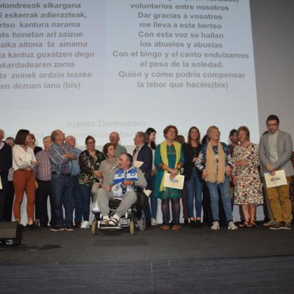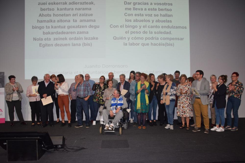 Ondoren boluntarioen aitortzaren momentua izan zen: Jesus Mª, Miguel, Simon, Pastoral de la Salud de Oiartzun, Bebes de la Bulla, Bonkora, Iñaki, Raquel eta Mª Jose. Eskola bezala eta belaunaldi arteko programek daukaten presentziagatik, Petra Lekuona zentroarekin partehartzen duen Haurtzaro ikastola izan zen.