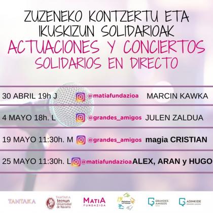 Tecnun Tantaka, Paliativos Sin Fronteras eta Adinkideri esker, hainbat kontzertu eta online jarduera eskaintzen ditugu, eta teknologiari esker, etxeetara, gela bakoitzera eta zentro bakoitzera irits gaitezke, eta gozatu eta jarduera desberdinak egin, egoera hau pixka bat arintzeko.