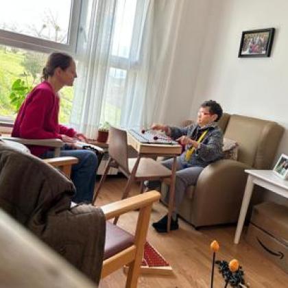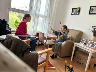 Urtarrilean eta otsailean Marianke eta Soraya musikoterapeuten bisitak izan ditugu, eta 18 pertsonekin eskuhartu dute banakako eta taldeko saioetan. Saio askotan senideek edo inguruko pertsonek ere parte hartu dute, eta, horrela, esku hartzea eta inpaktua areagotu egin dira, emozio eta erreakzio maila askotarikoa izan baita, horietako askotan ustekabekoak. Musikak, terapeutekin bideratua, adierazpen eta erreakzio kanalak ireki ditu pertsonengan: barreak, negarrak, mugimenduak, eskaerak...