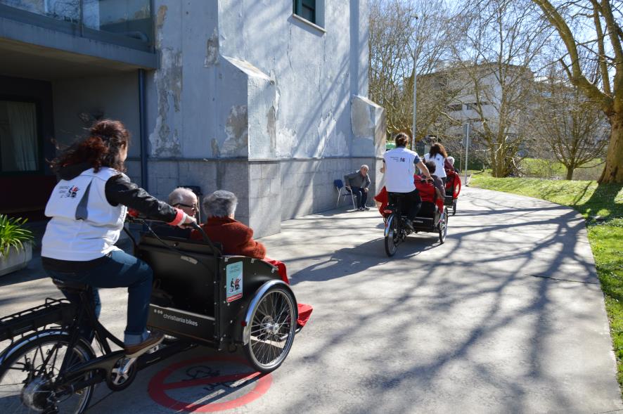La actividad consiste en realizar paseos y salidas en triciclo donde el voluntario puede llevar a dos personas mayores por triciclo. El triciclo es una herramienta para construir mejores vínculos inter-generacionales y relaciones, creando historias paseando por Donostia, donde las personas mayores re-descubren de la ciudad acompañados de voluntarios, familiares, vecinos, amigos, colaboradores generando COMUNIDAD.