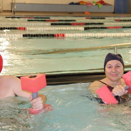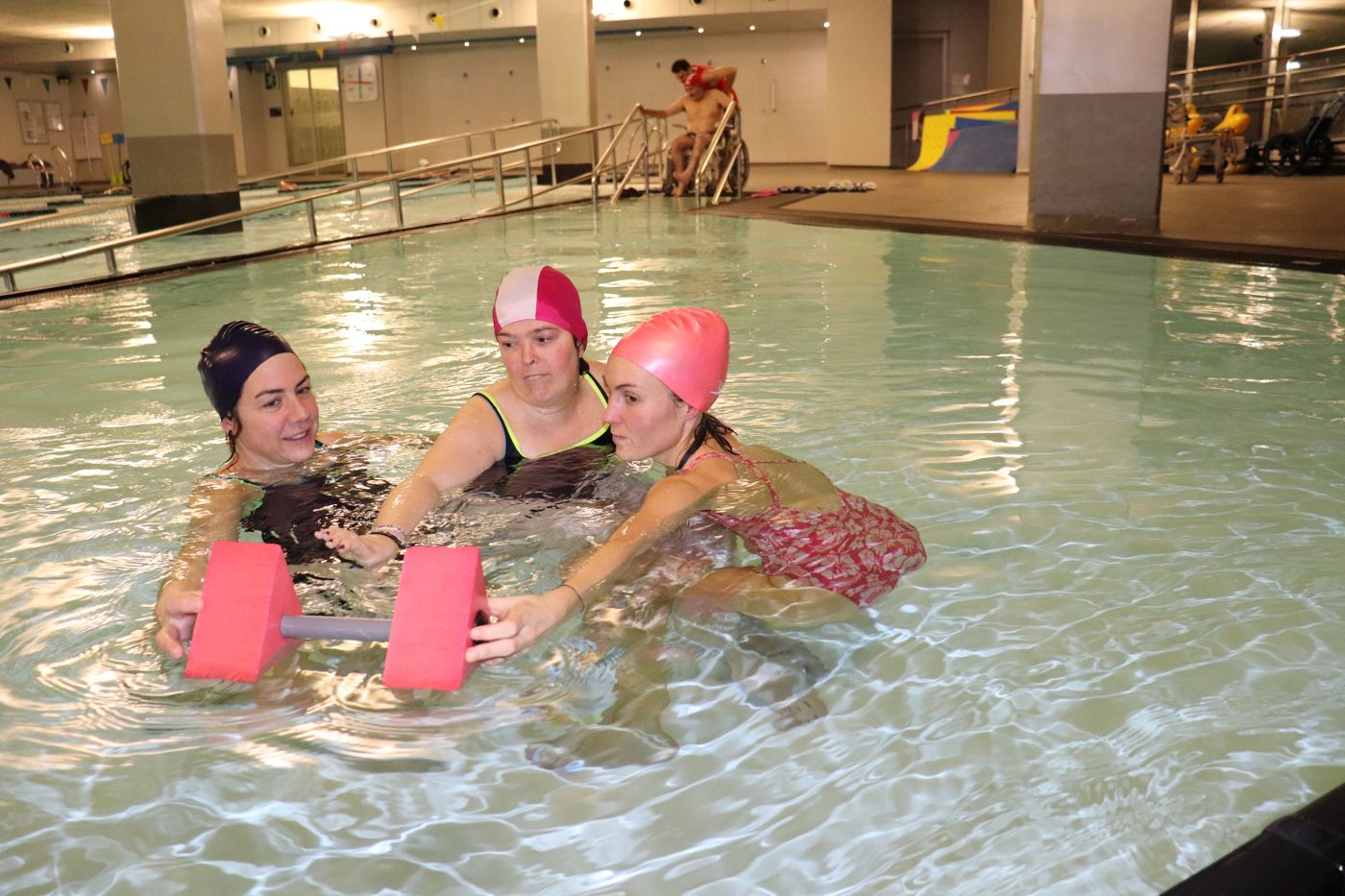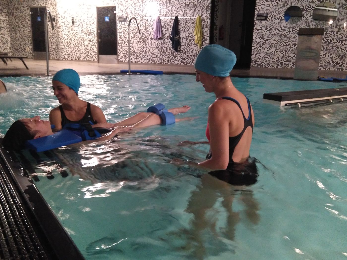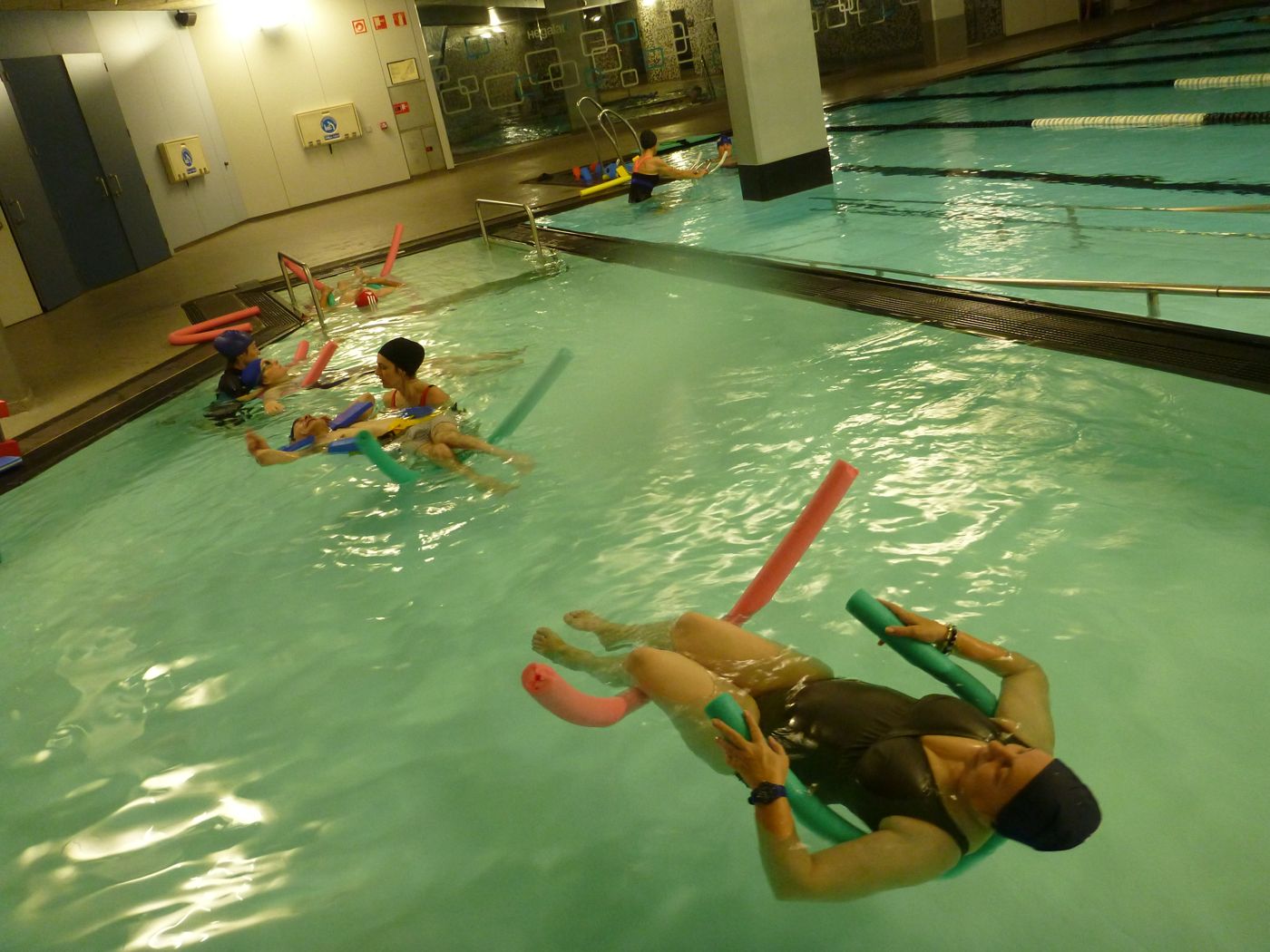 El 7 de Septiembre ya hicimos nuestra primera sesión en Hegalak. En este primer grupo participan 5 personas, con historias, experiencias y situaciones de salud muy diversas. Podemos contaros que una de las personas no había estado nunca en una piscina, aunque sabe nadar muy bien. Otra persona hacía muchos años que no se sumergía en el agua. Y poder hacer ejercicio físico, guiada y apoyada por una fisioterapeuta, ¡es un lujo! Actividades adaptadas, que hacen mover el cuerpo, en un medio que ofrece una sensación de ingravidez.