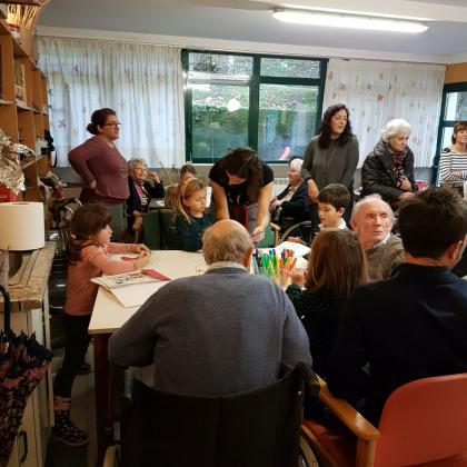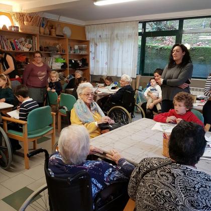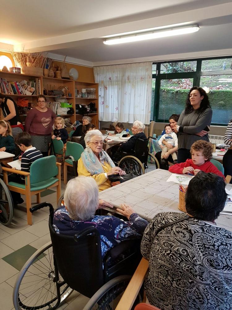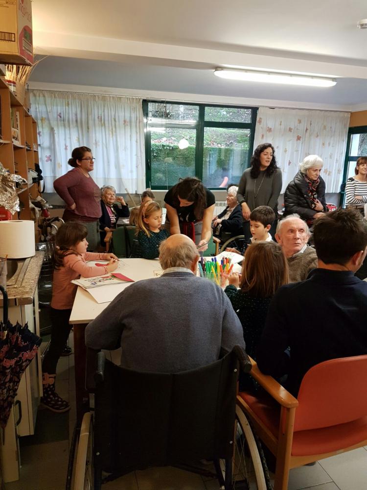 Tal y como os propusimos, este sábado pasado, 16 de Diciembre, en el centro Rezola y dentro del programa de Navidad, hicimos un encuentro entre mayores y pequeños. Los MatiaZales Txikis estuvieron haciendo actividades navideñas con algunas personas mayores que viven en Rezola: dibujos de Navidad, adornos para el árbol, cuentacuentos… ¡incluso Magdalena nos recitó una poesía!
