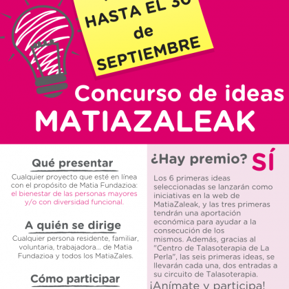 ¡Animaros! ¡Seguro que tenéis muchas ideas! Escribirlas y puede ser que se cumplan y que ayuden a mejorar el bienestar de las personas mayores y personas con diversidad funcional: info@matiazaleak.net
