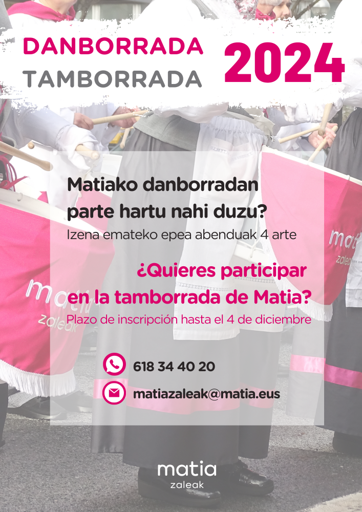 Ya está abierto el periodo de inscripción para la tamborrada MatiaZaleak de 2024.