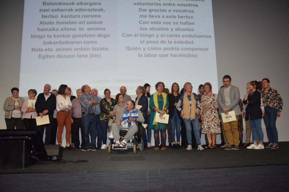 Ondoren boluntarioen aitortzaren momentua izan zen: Jesus Mª, Miguel, Simon, Pastoral de la Salud de Oiartzun, Bebes de la Bulla, Bonkora, Iñaki, Raquel eta Mª Jose. Eskola bezala eta belaunaldi arteko programek daukaten presentziagatik, Petra Lekuona zentroarekin partehartzen duen Haurtzaro ikastola izan zen.