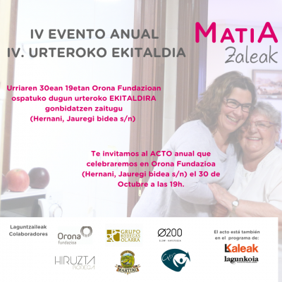 Laugarren urtea da ekitaldia antolatzen duguna eta bertan, MatiaZaleak inguruan egon diren lorpen eta erronkak errepasatzeaz gain, Matia Fundazioarekin xedearen lorpenean laguntzen duten elkarte eta boluntarioei aitortza eta eskertza emango diegu. Hala nola, zaintzen duen gizartea nola seraikitzen dugun hausnarketa egingo dugu.