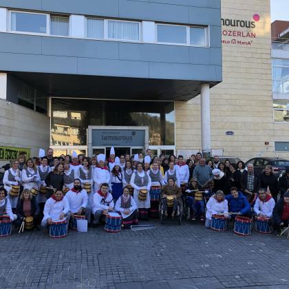 2020 urte honetan, gure bigarren irteera izan dugu. Handitu gara, pertsona kantitatean, esperientzian eta solidaritatean. Aurtengo honetan 7 pertsona (traje solidario) izan ditugu taldean (eta guztira 82 batu gara), zeintzuk beraien inguru eta Nagusilan eta Adinkideren boluntarioen laguntzarekin, danborradaz gozatu dute era integratzaile eta berdintasunez.